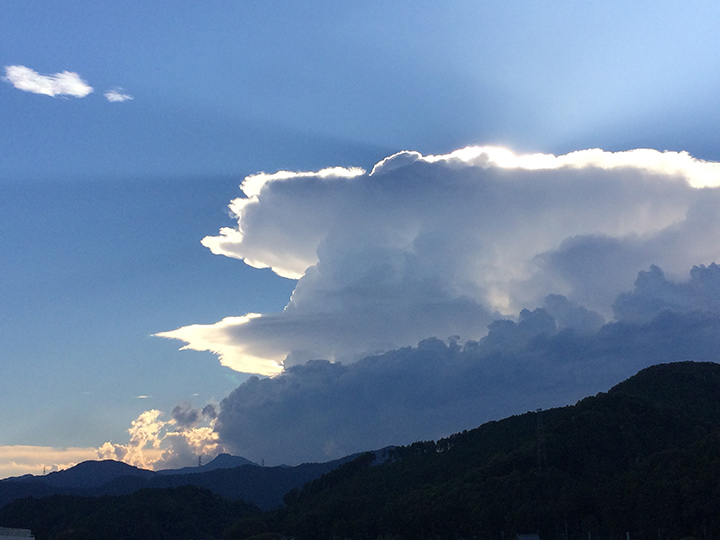 横に長くたなびいている「棚雲」は積乱雲の下に発生するので、すぐ近くに積乱雲があることを知らせてくれています。